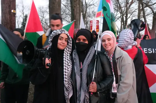 THE TEENAGERS GATHERED outside Teaneck High School on a chilly Friday afternoon in February, watched by a heavy police escort and an NBC news crew. They unfurled a banner bearing the Palestinian flag and marched around the streets of suburban Teaneck, New Jersey. The protest was part of a statewide “day of action” for Palestine.